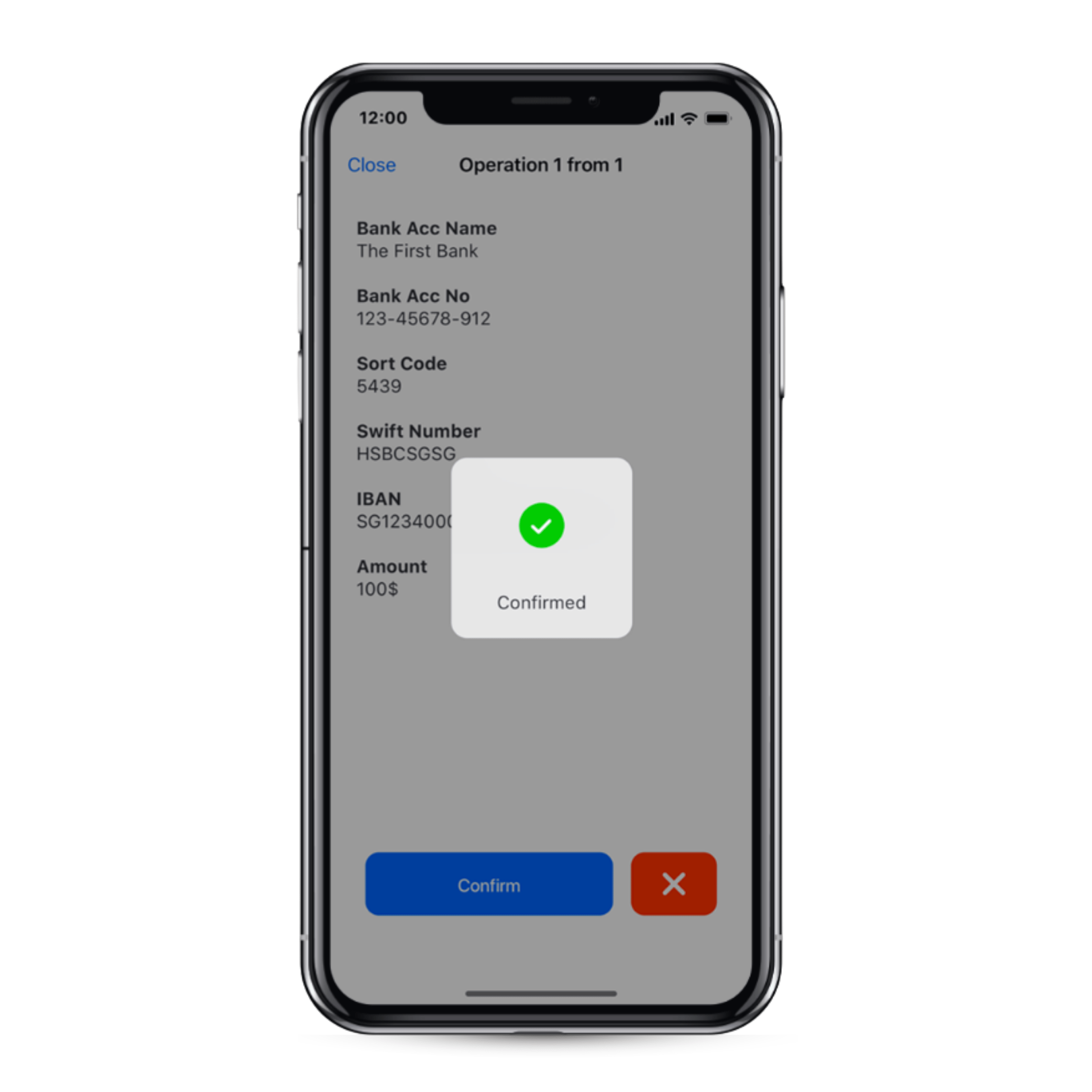 • Không giống OTP – chỉ xác nhận “một chiều”, PayConfirm hiển thị đầy đủ chi tiết giao dịch hoặc điều khoản giao dịch cho người dùng trước khi họ xác nhận, cũng như sau khi hoàn tất xác thực.